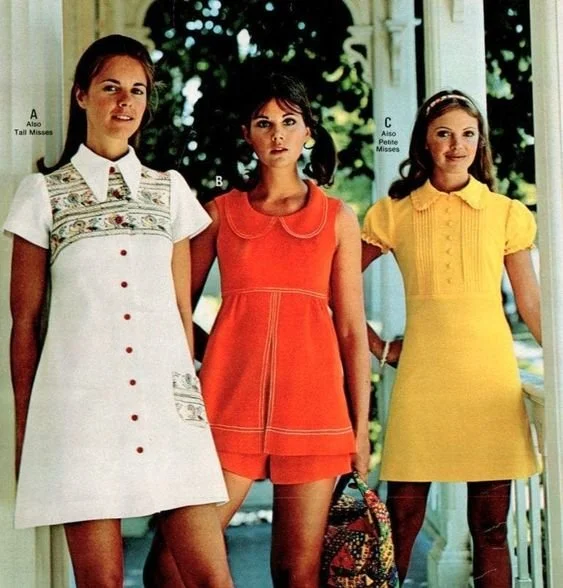Polyester/Crimplene. Polyester really took over the garment industry during the 60’s, which is why we see so many fun-coloured skirts after this era. From mini skirts to pencil skirts, full crimplene maxi’s and Asymmetrical midi’s; There’s so much option here.