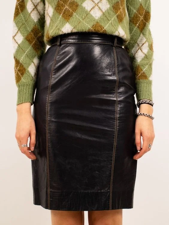 Leather & Suede. Made popular in the 70’s, 80’s, and 90’s, leather skirts have a certain cool girl feel that you’ll love. The 80’s really had their fun with an array of colours, but even a neutral leather skirt will make you feel fabulous.